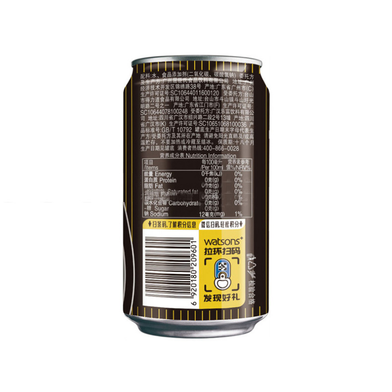 | 产品名称 : | 屈臣氏 苏打汽水330ml*24罐 整箱装 |