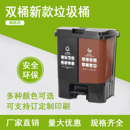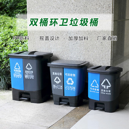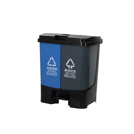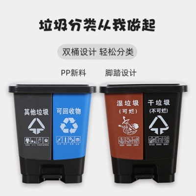 上海专用分类双桶垃圾桶 带盖商用脚踏 40L