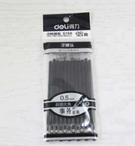 得力S768中性替芯0.5mm子弹头(黑)(12支/袋)