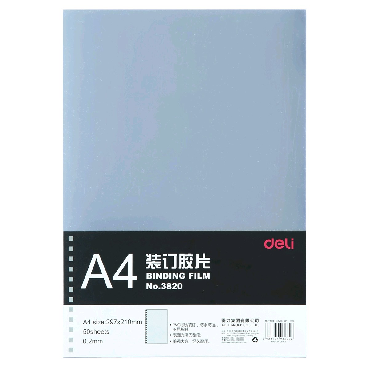 得力3820 装订胶片(50张/包)