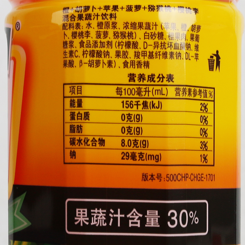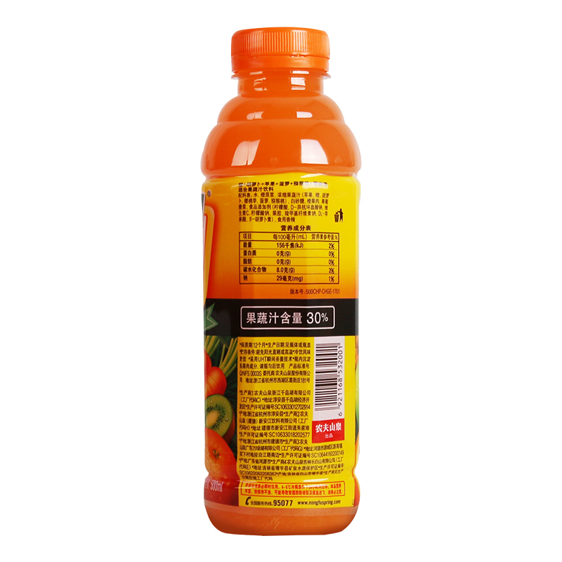 农夫山泉 农夫果园30%混合果蔬汁胡萝卜橙 500ml*24...