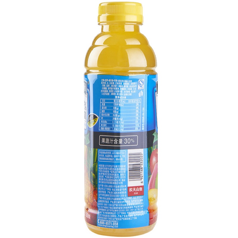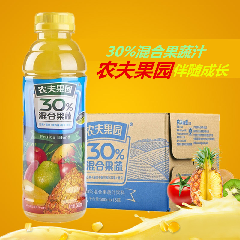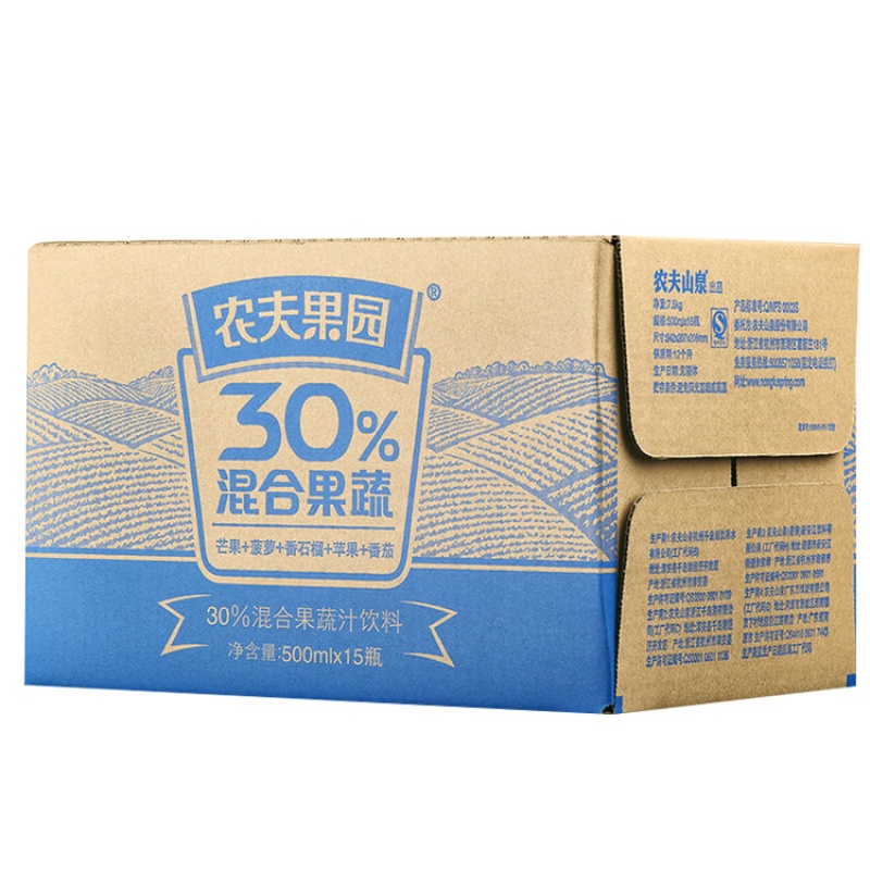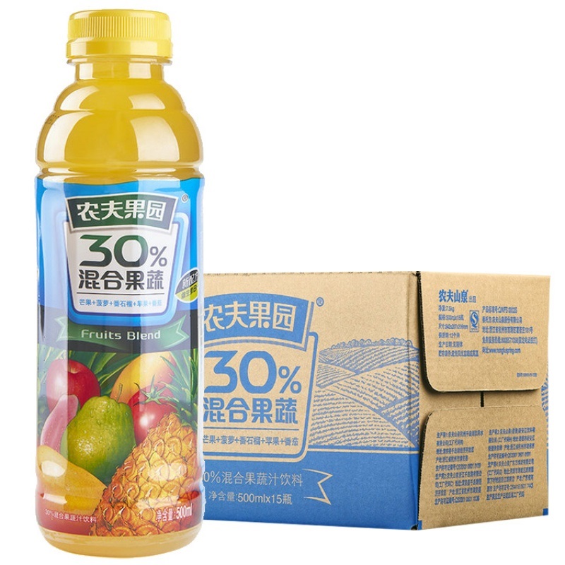 产品名称 : 农夫山泉(NONGFU SPRING) 农夫果园30%混合果蔬汁 菠萝芒果500ml*24瓶(纸箱装)