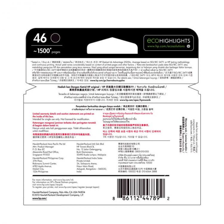 惠普(HP) 46(黑色)墨盒CZ637AA