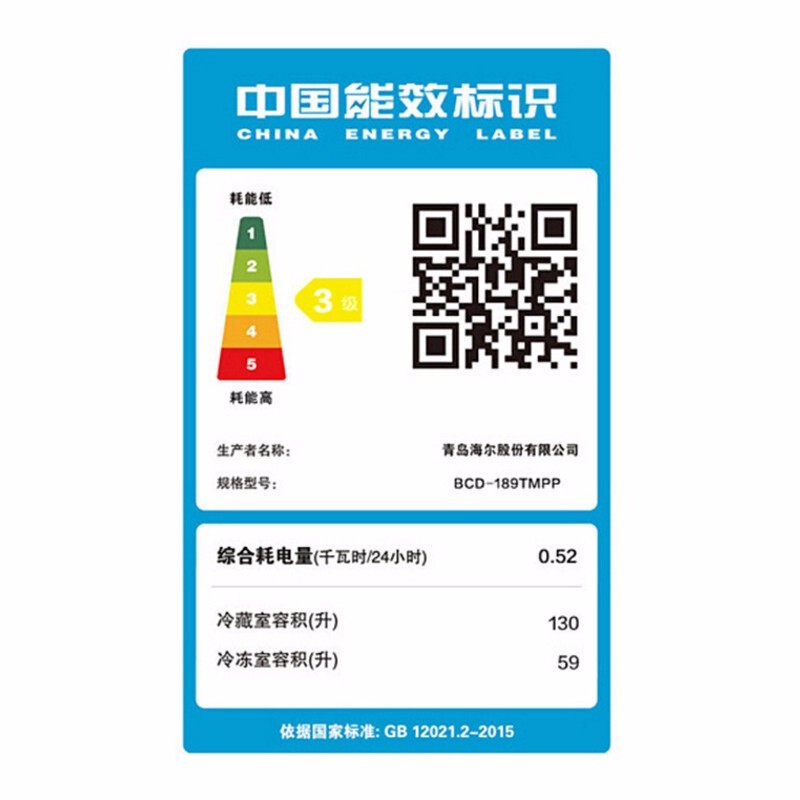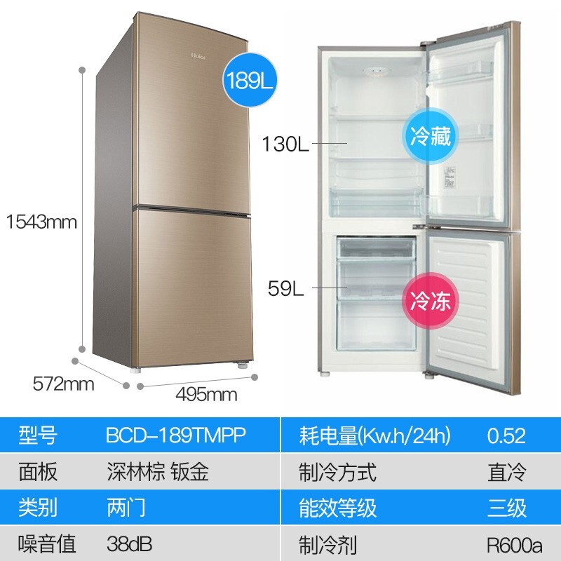 海尔(Haier) 189升直冷两门家用冷藏冷冻冰箱 BCD...