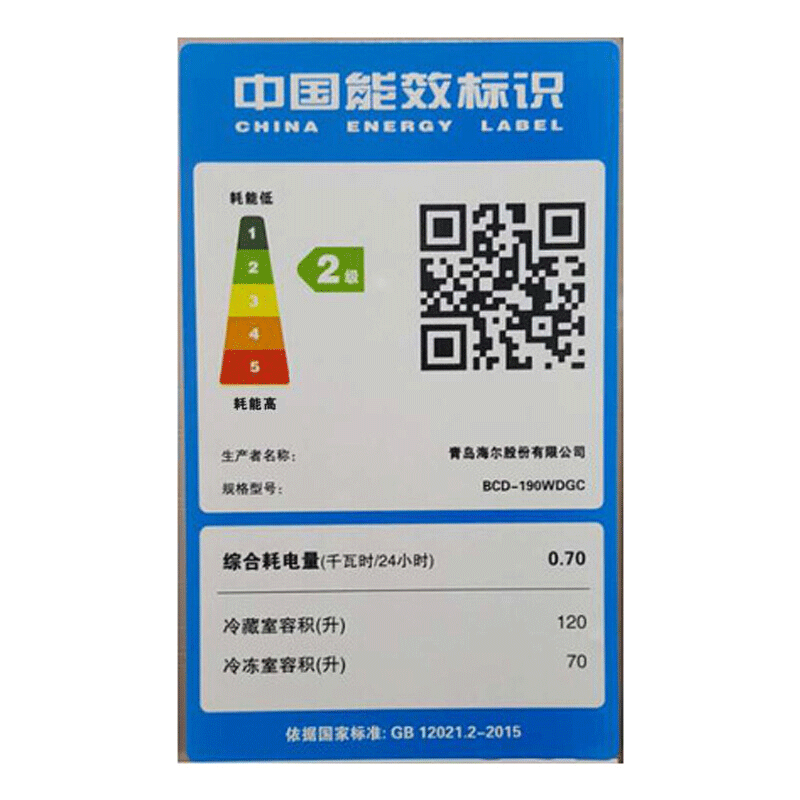 海尔(Haier) 190升风冷两门小型家用节能静音无霜冰箱...