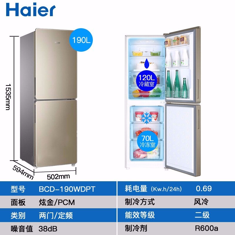 海尔(Haier) 190升风冷双门无霜小型电冰箱BCD-1...