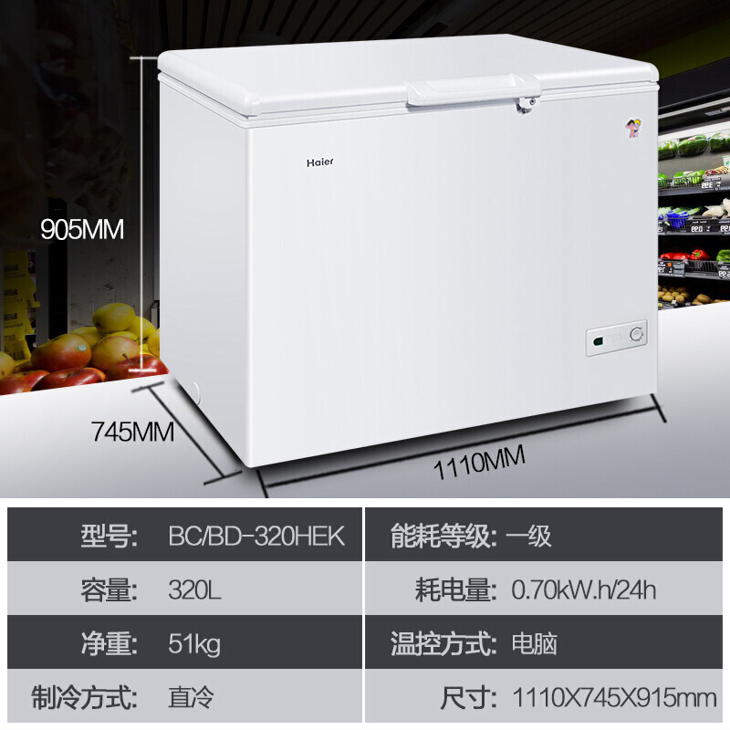 海尔(Haier) BC/BD-320HEK(白色)卧式低温...