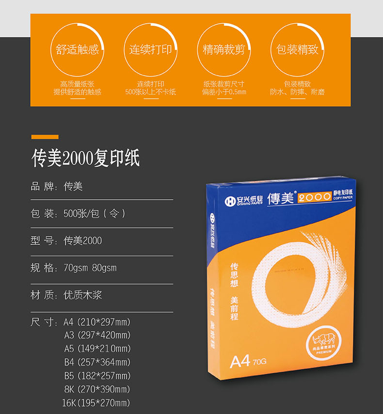 传美2000复印纸 70G 16K 500S 10包/箱