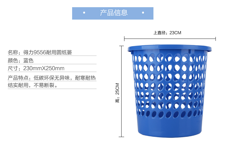 得力(deli) 9556(蓝)圆形纸篓
