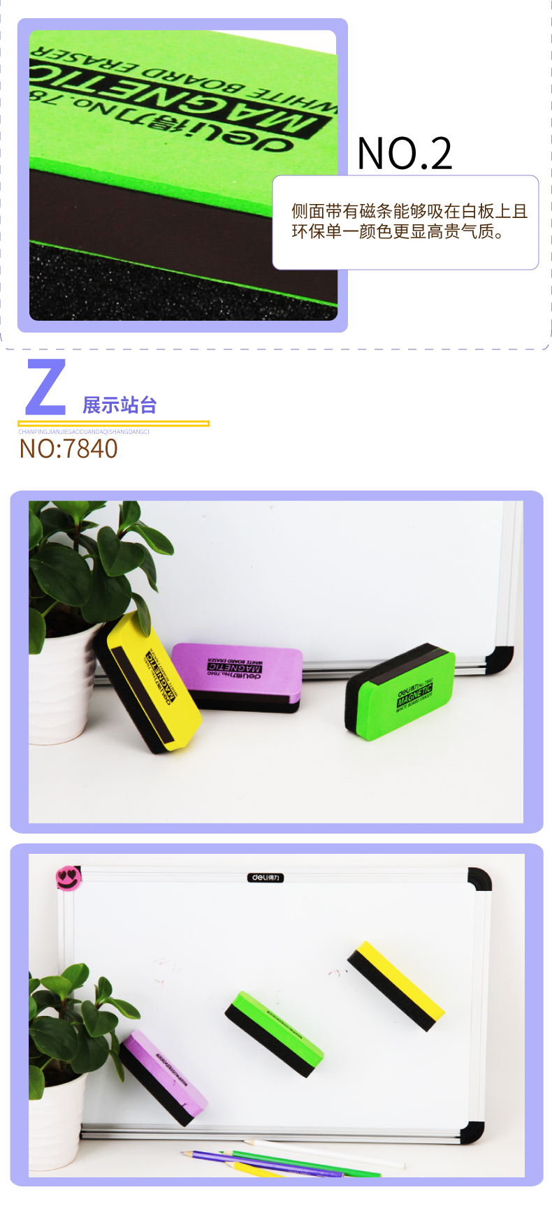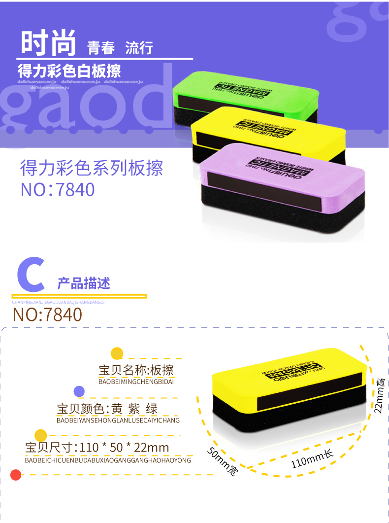得力(deli) 7840白板擦150*50*30(混)(只...