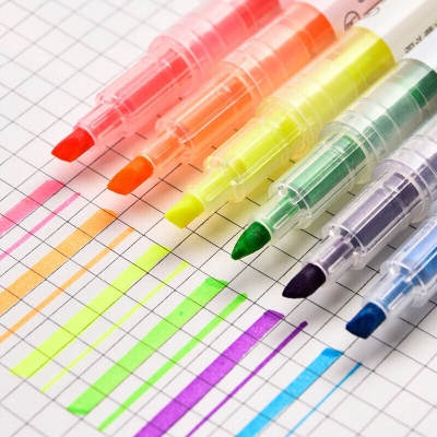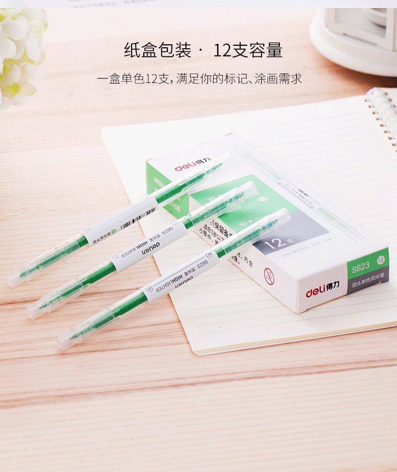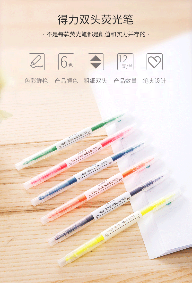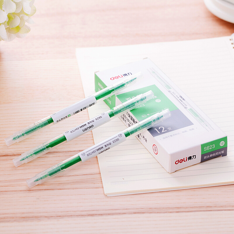 得力S623/s627双头荧光笔12支双头粗头细头