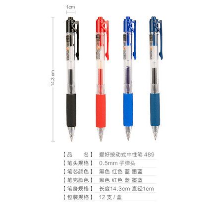 爱好(AIHAO)489按动中性笔0.5MM按动笔
