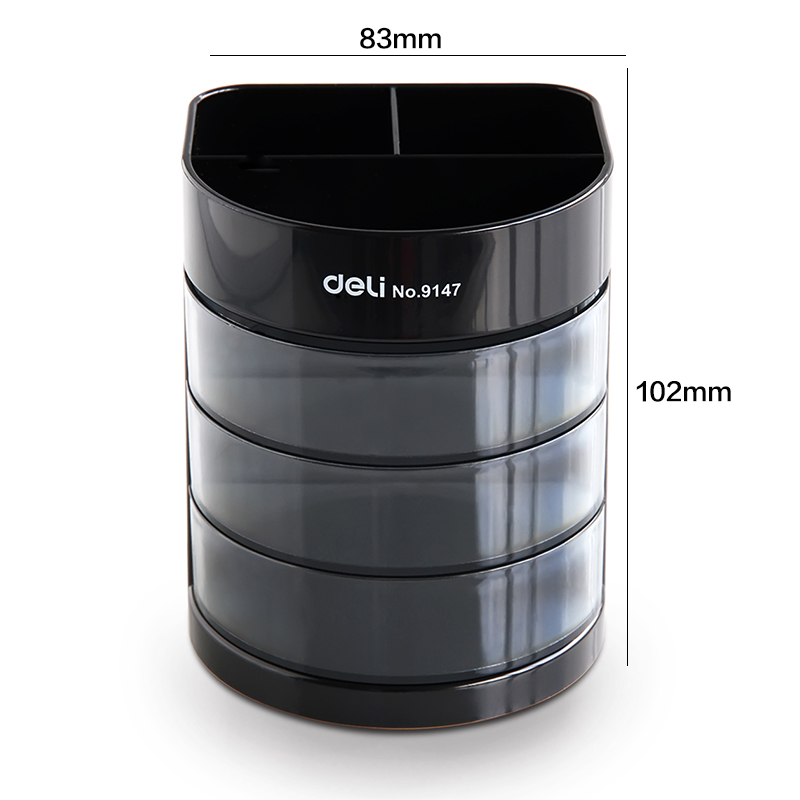 得力(deli) 9147(黑色)(灰色)三层多功能笔筒