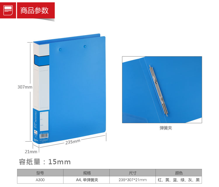 齐心(COMIX) A300(蓝色)轻便夹单弹簧夹A300-...