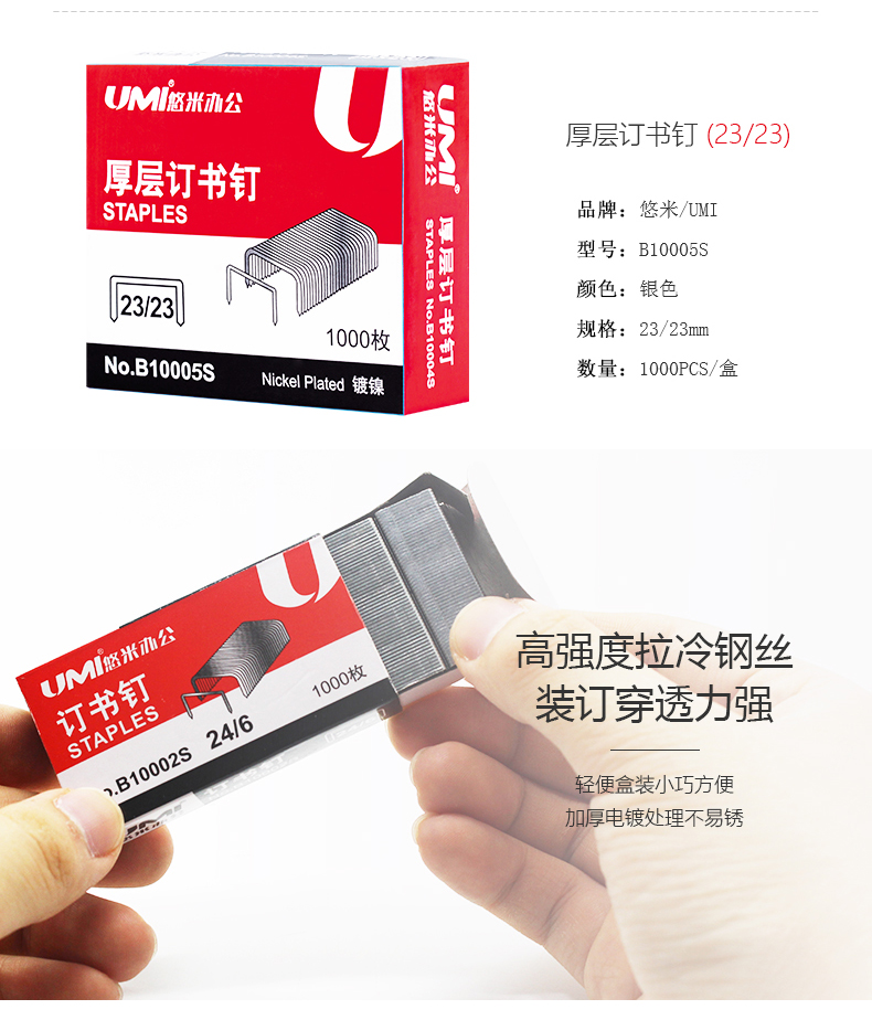 悠米(UMI)重型订书针,23/23,1000pcs/盒 B...
