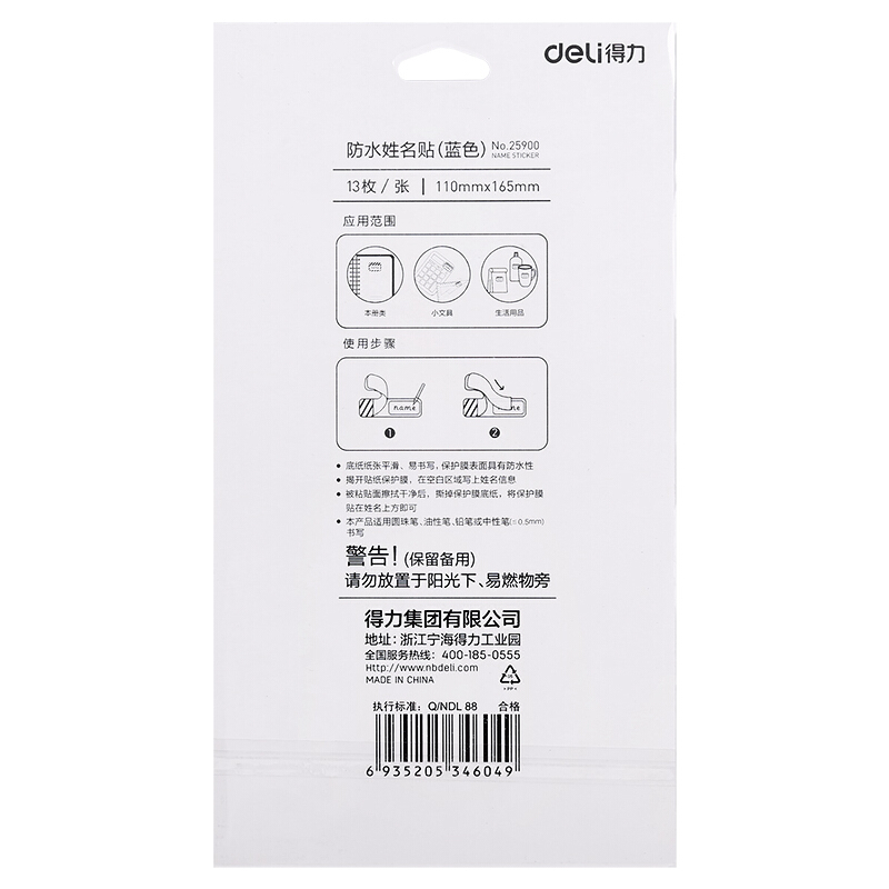 得力(deli) 25900(蓝色)防水姓名贴