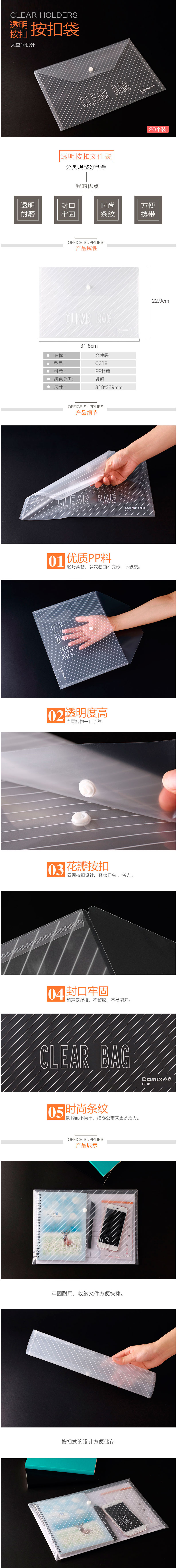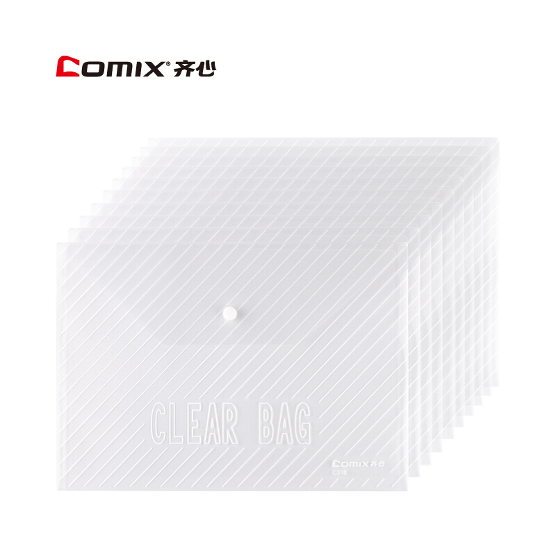 齐心(COMIX) C318(透明)巨划算经典条纹透明按扣袋...