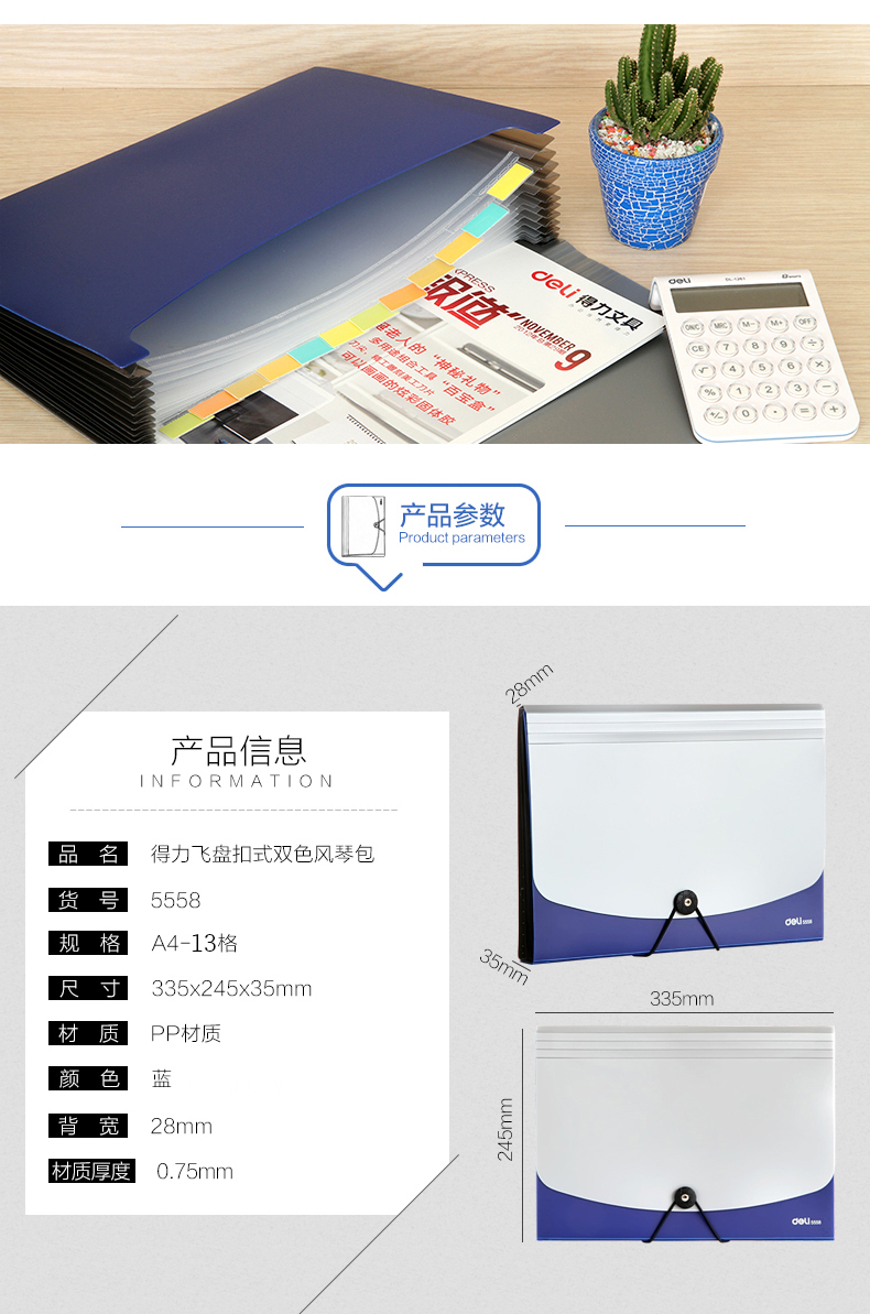 得力(deli) 5558(混)12格飞盘扣式风琴包(双色)