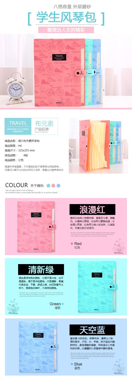 得力(deli) 5737(蓝色)(浅红)(浅绿)八格风琴包