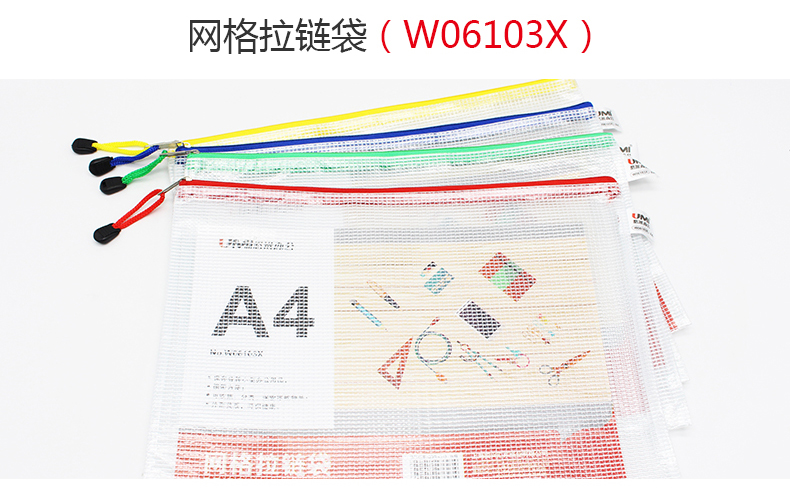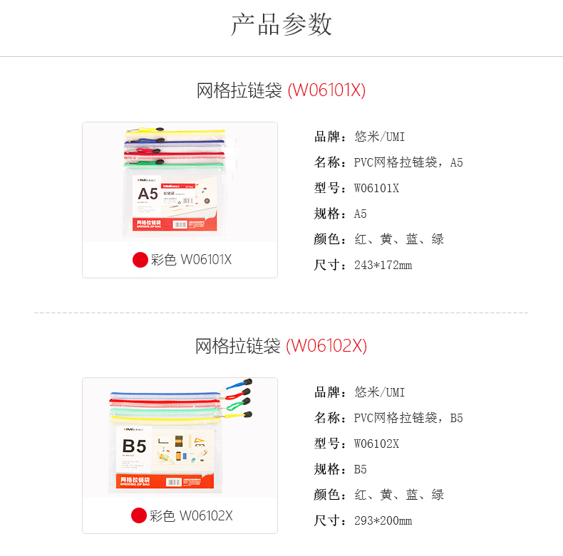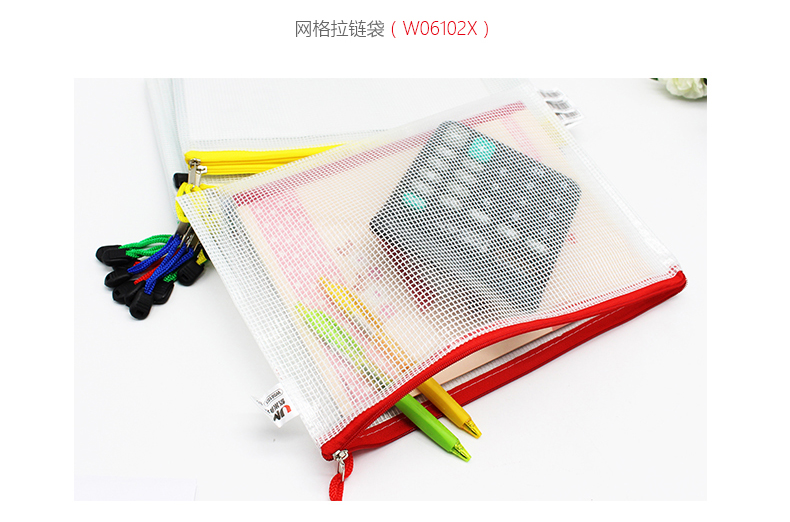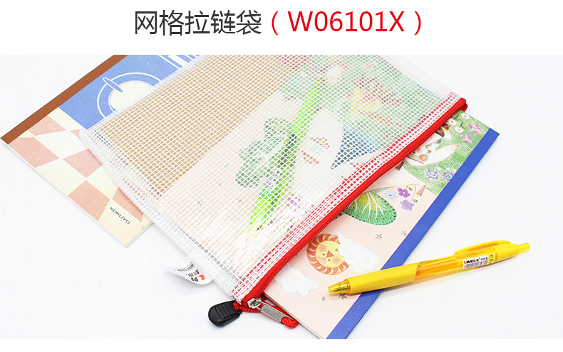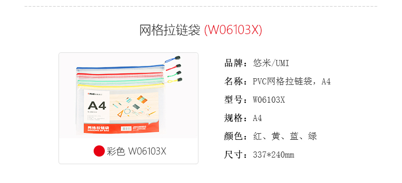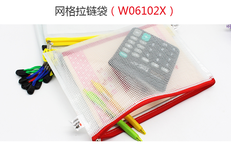 悠米(UMI)PVC网格拉链袋,A5 W06101X 配(红...
