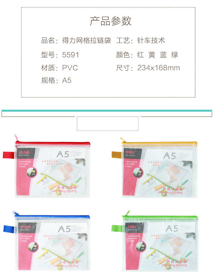 得力(deli) 5591(混)网格拉链袋A5