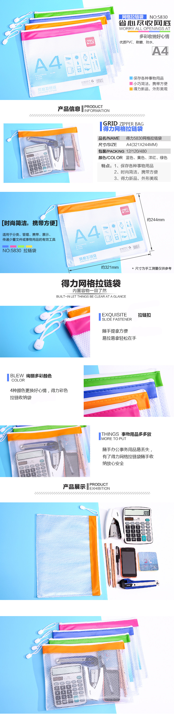 (非备货) 得力(deli) 5831网格拉链袋(混)(只...