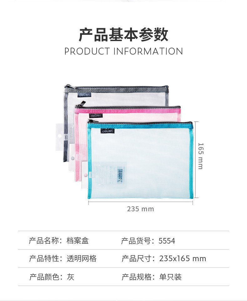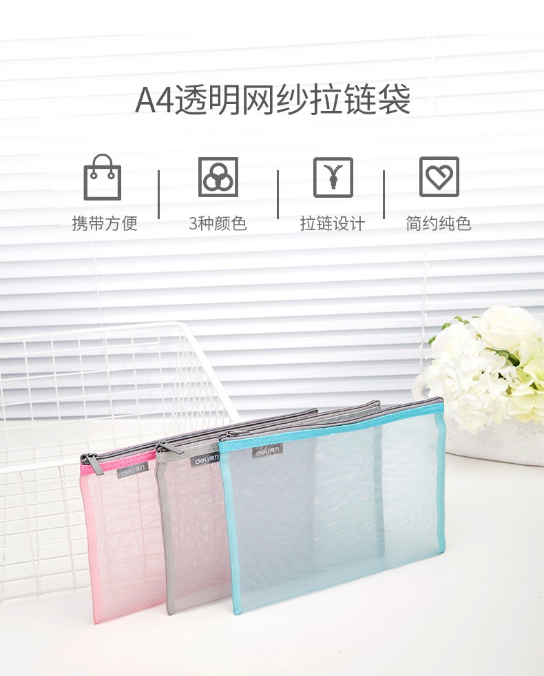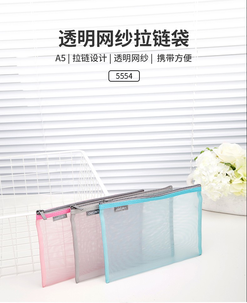 得力(deli) 5544(蓝色)(灰色)(粉色)拉链袋