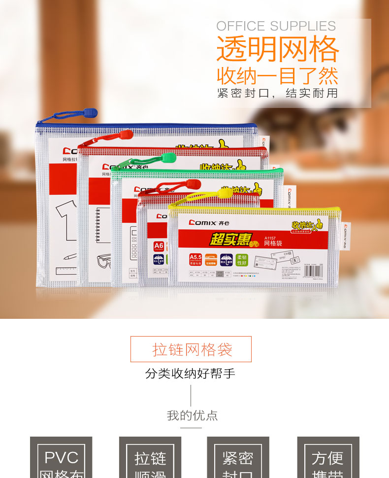 齐心(COMIX) A1155超实惠网格袋 配 B5