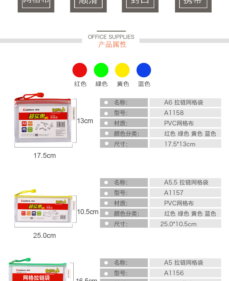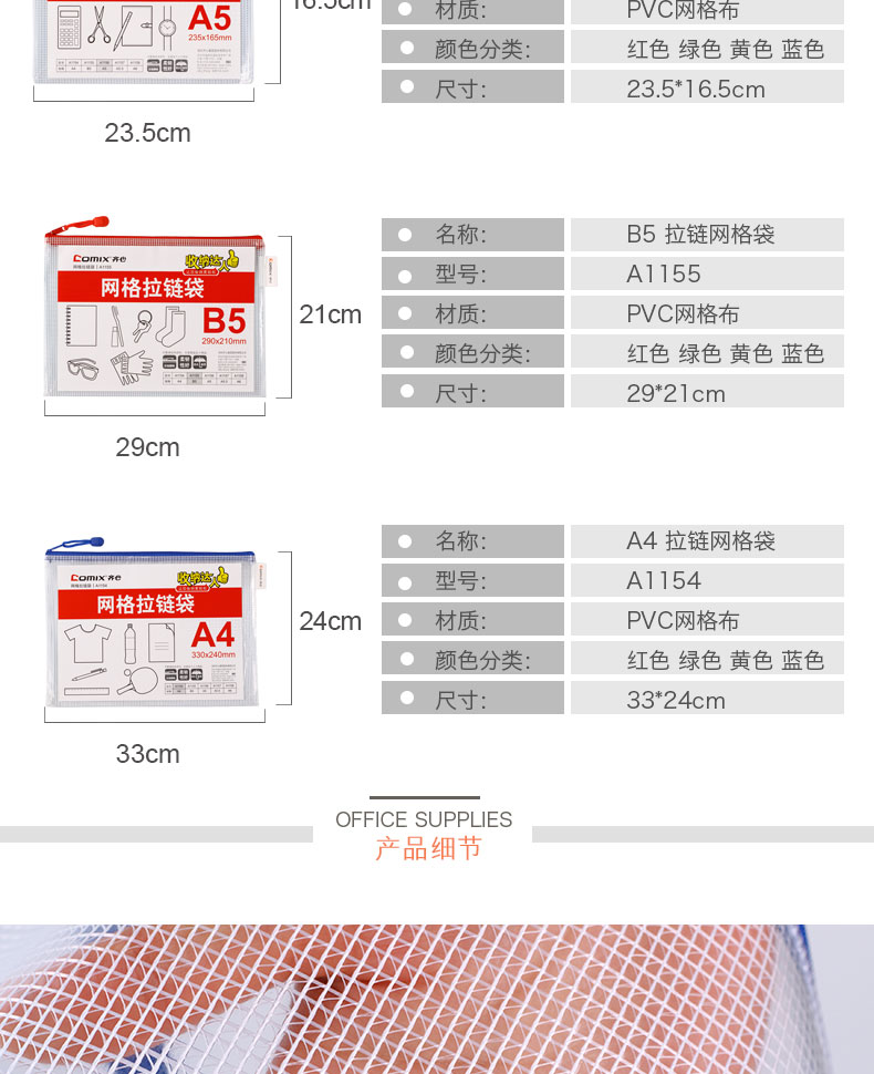 齐心(COMIX) A1156超实惠网格袋 配 A5