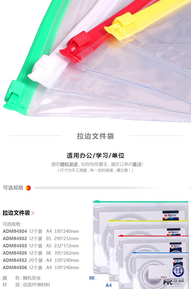 晨光(M&G) ADM94504拉边袋PVC透明A4