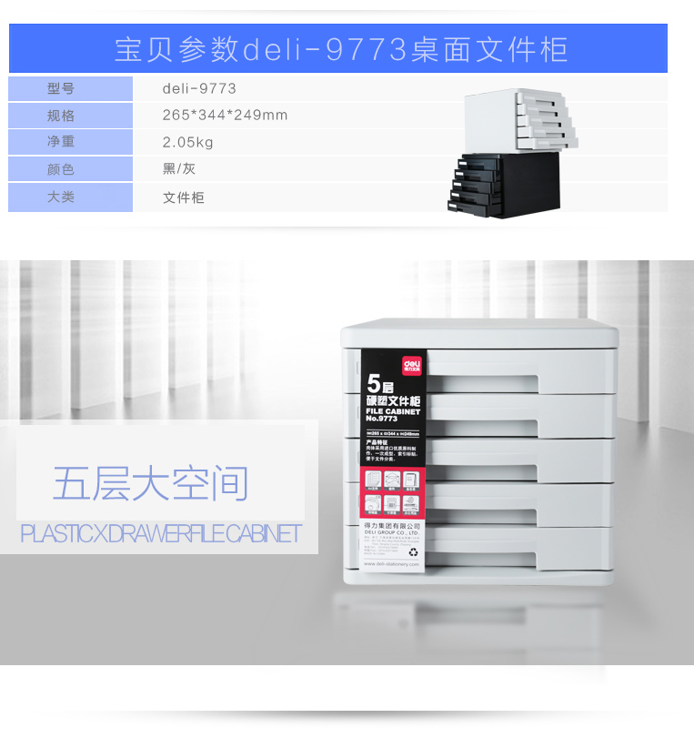 得力(deli) 9773(黑)(灰)五层硬塑文件柜
