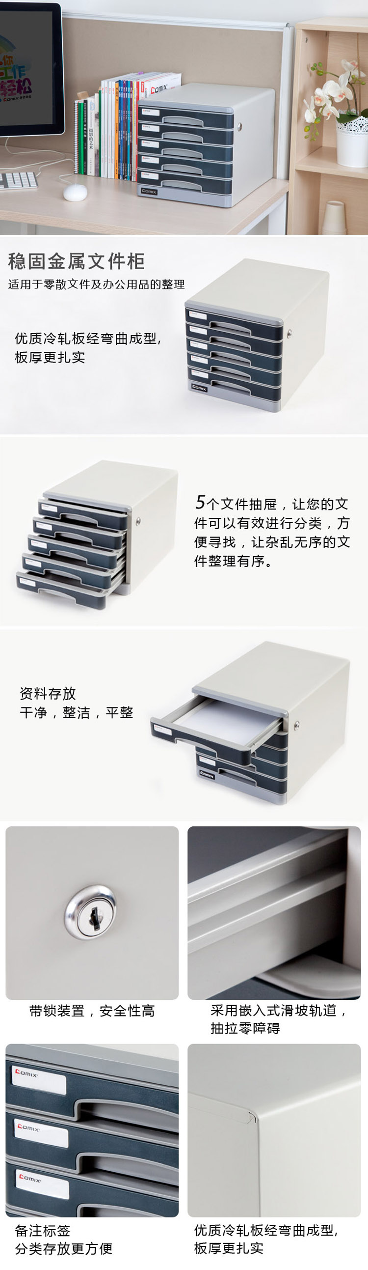 齐心(COMIX) B2201(灰)金属文件柜带锁五层