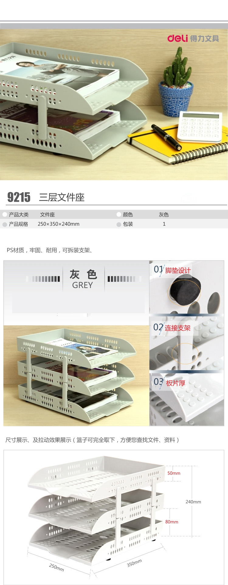 得力(deli) 9206(黑)三层文件座