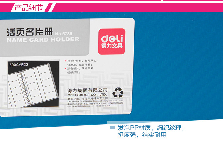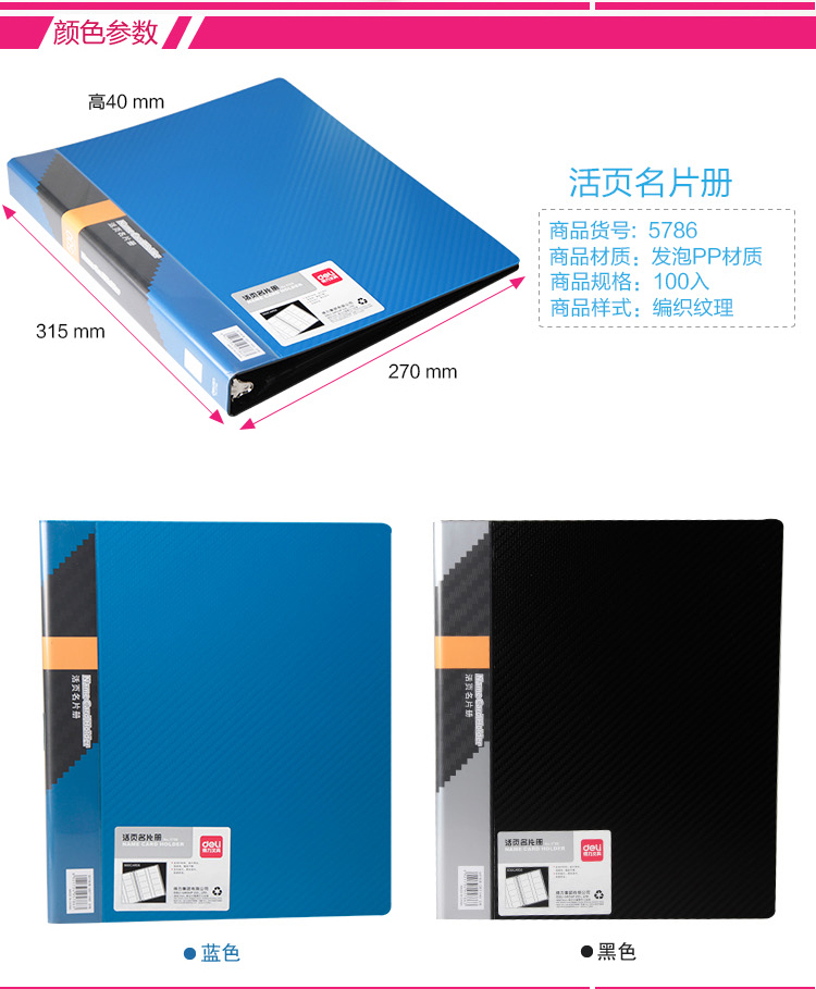 得力(deli) 5786(黑)(蓝)发泡PP500入名片册...