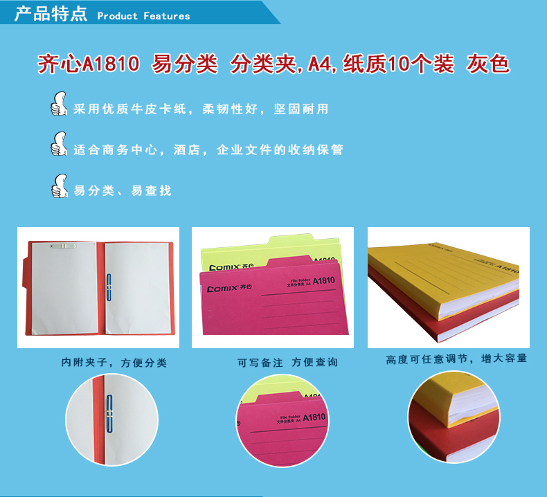 齐心(COMIX) A1810蓝/红/黄/灰/绿/易分类分类...