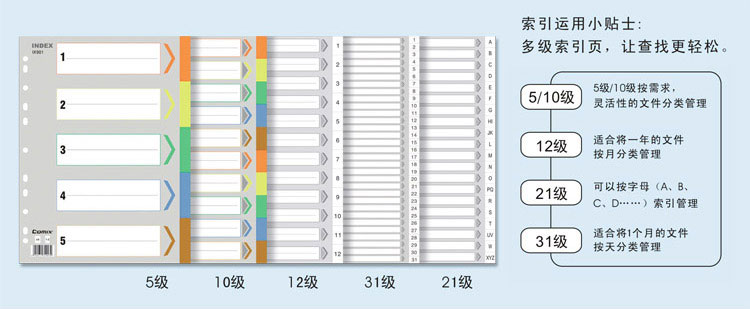 齐心(COMIX) IX894 易分类(灰)年度索引纸PP ...