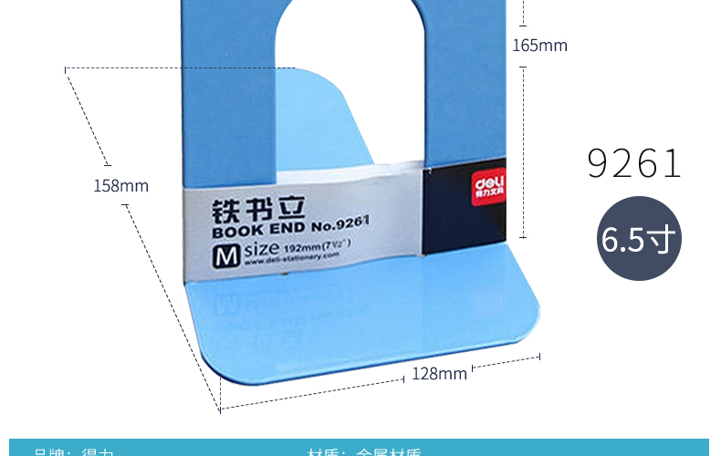 得力(deli) 9262(蓝)铁书立-7.5寸192mm)