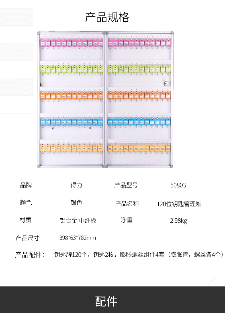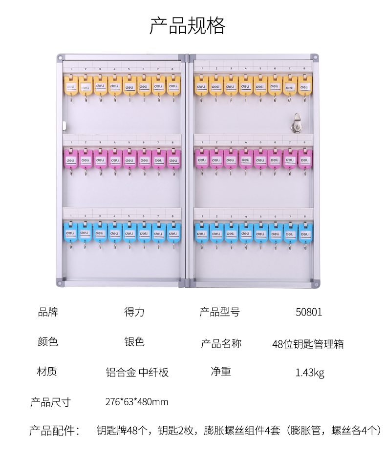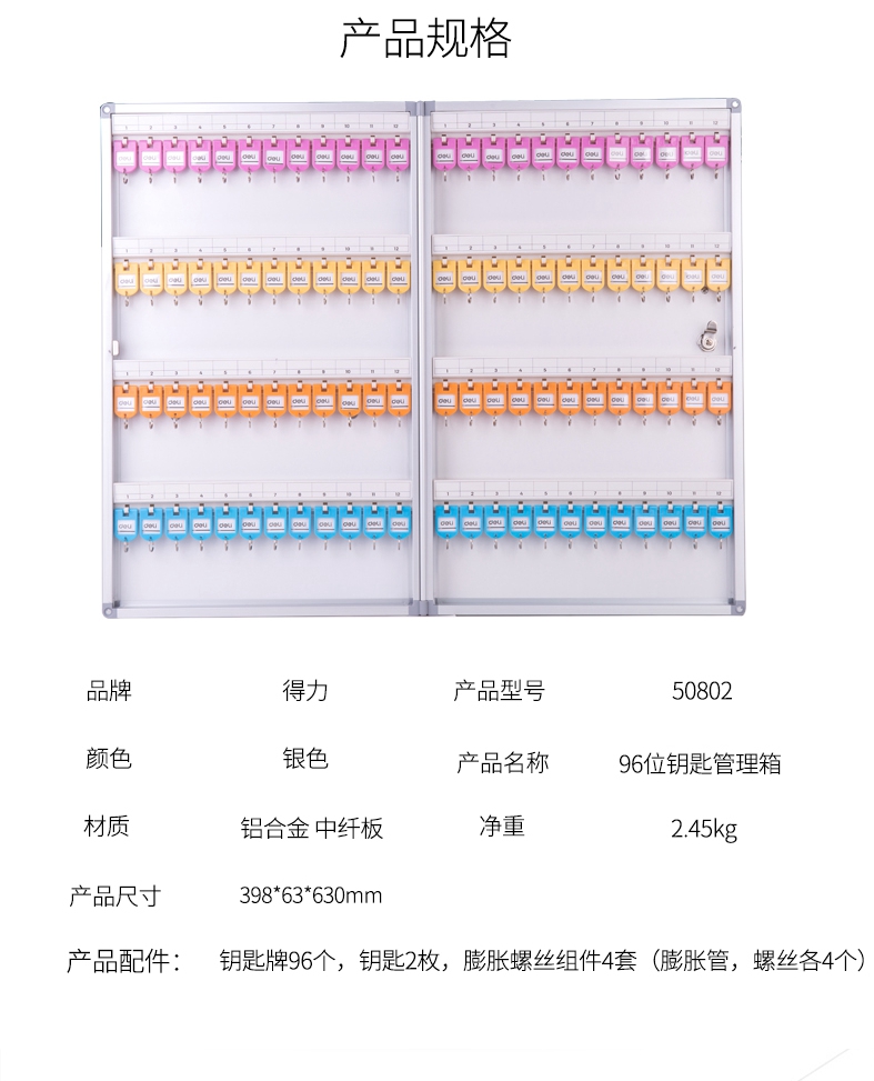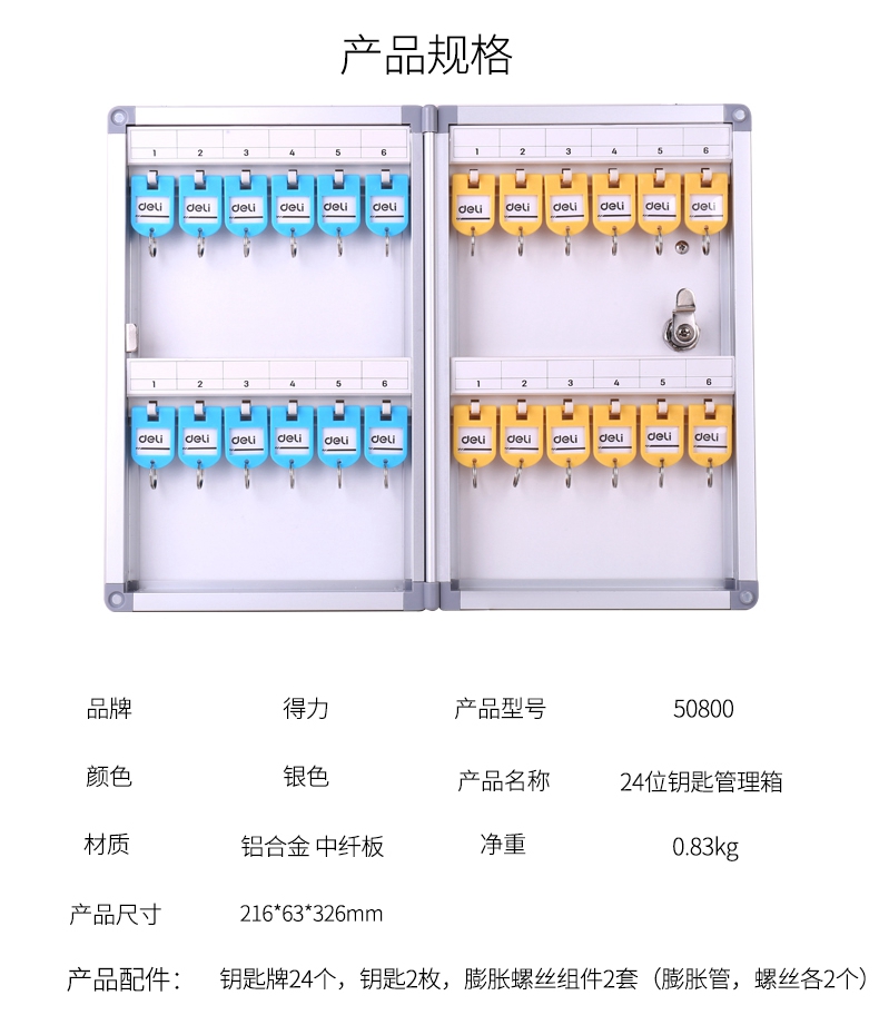 得力(deli) 50802-铝合金钥匙管理箱(银)