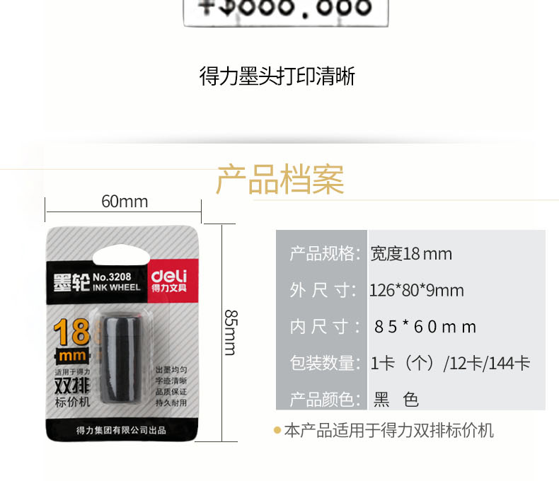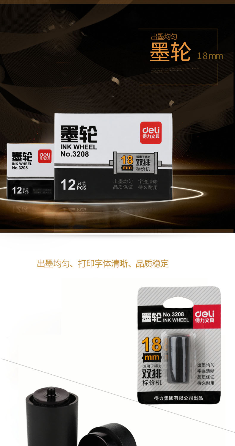 得力(deli) 3208双排墨轮(黑)(只)