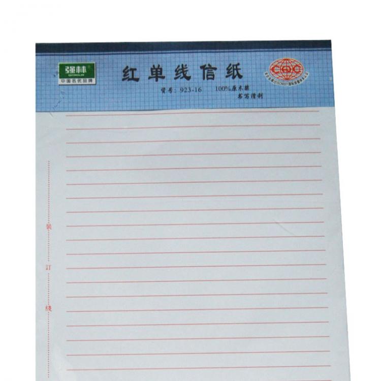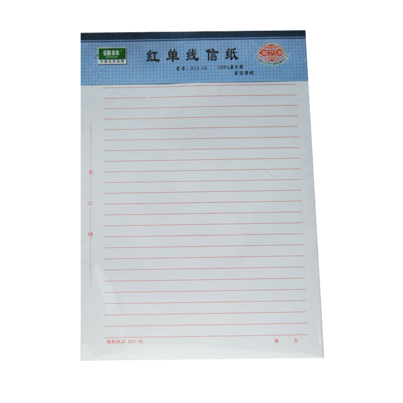 强林 923-16红单线信纸-16K