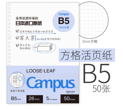 国誉(KOKUYO) WCN-CLL1514方格活页本B5 ...