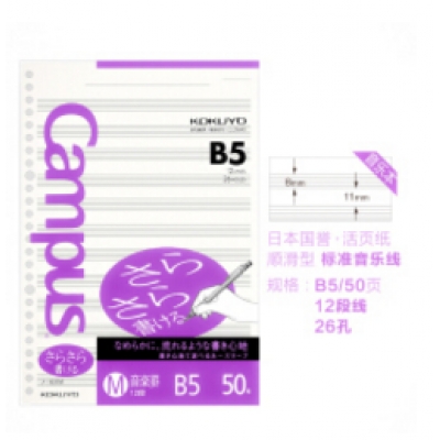 国誉(KOKUYO) 837M(紫色)26孔活页纸(五线谱)...