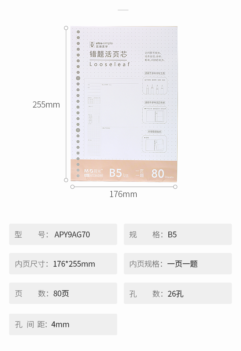 晨光(M&G) APY9AG69错题活页芯优品理科26孔B5...