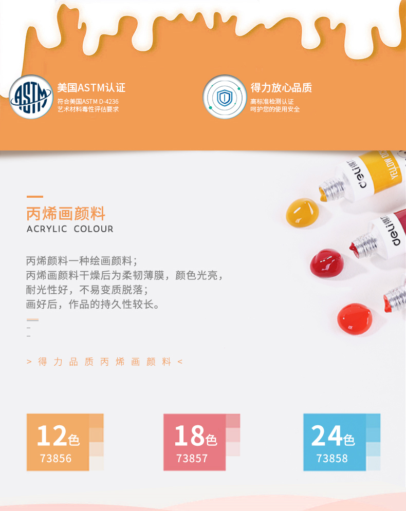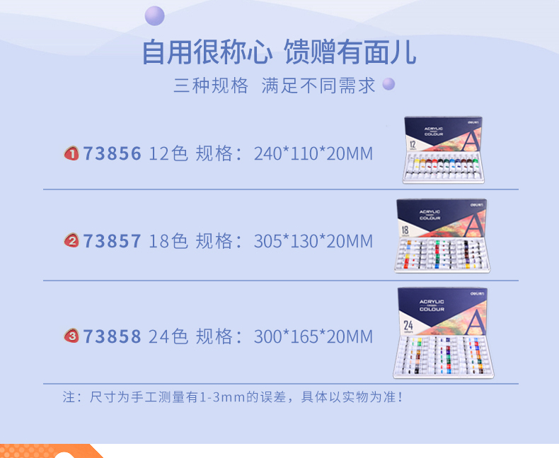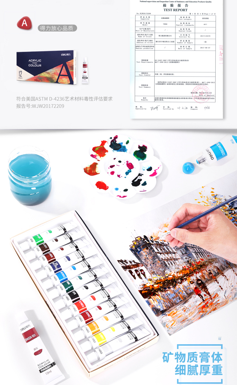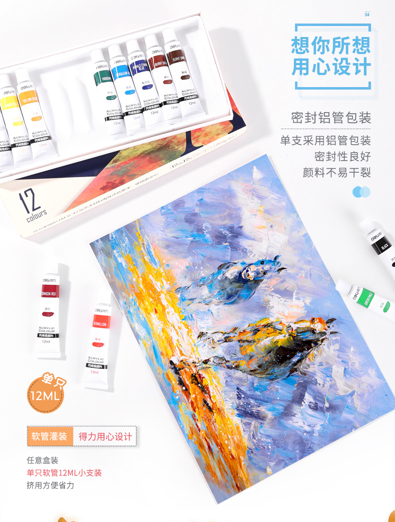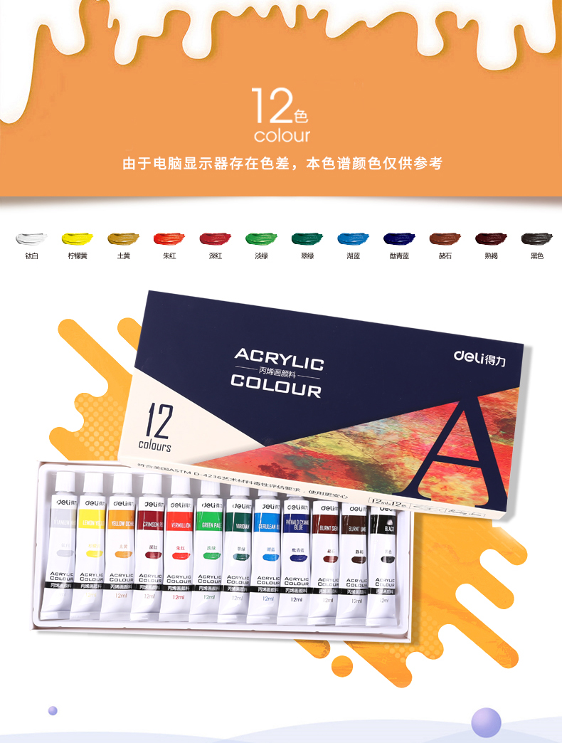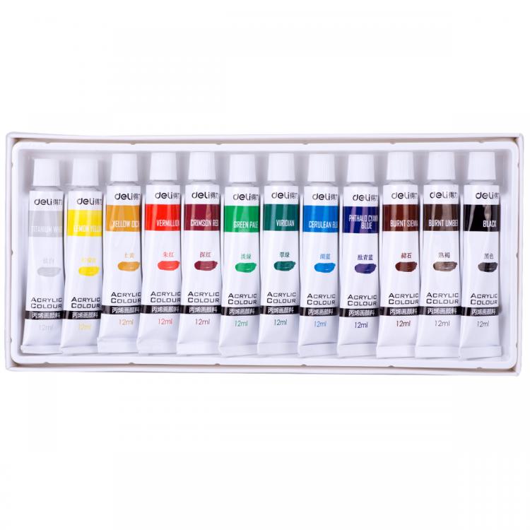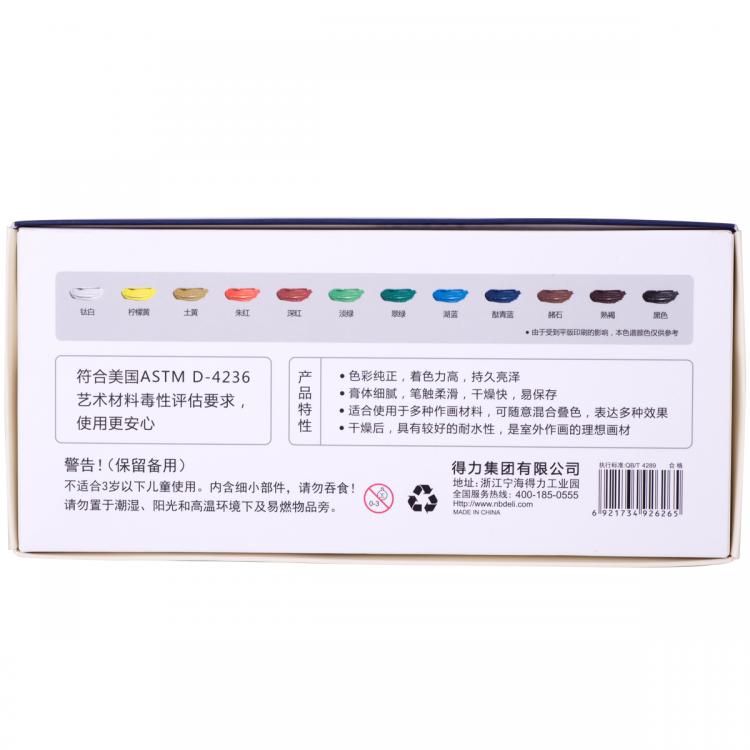 得力(deli) 73856(蓝色)12色丙烯颜料
