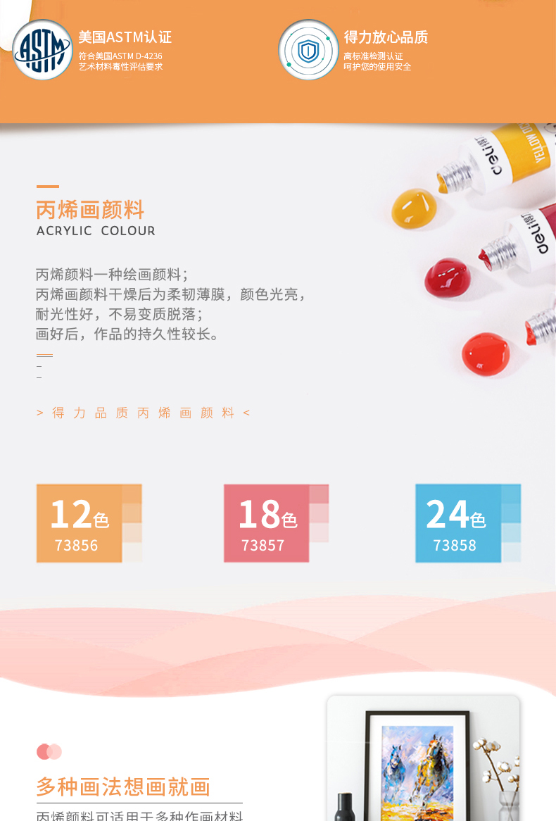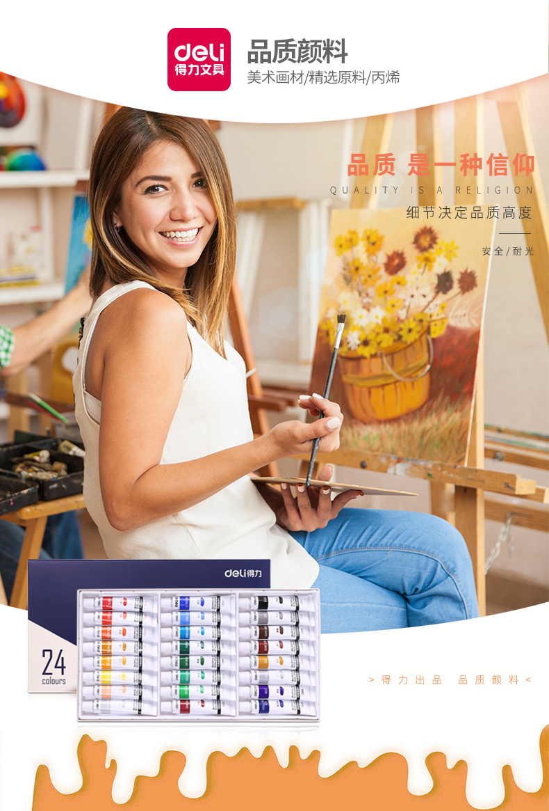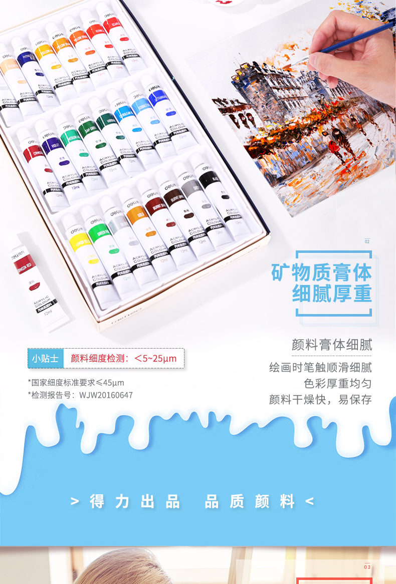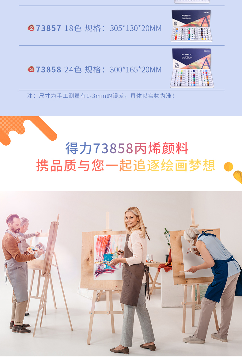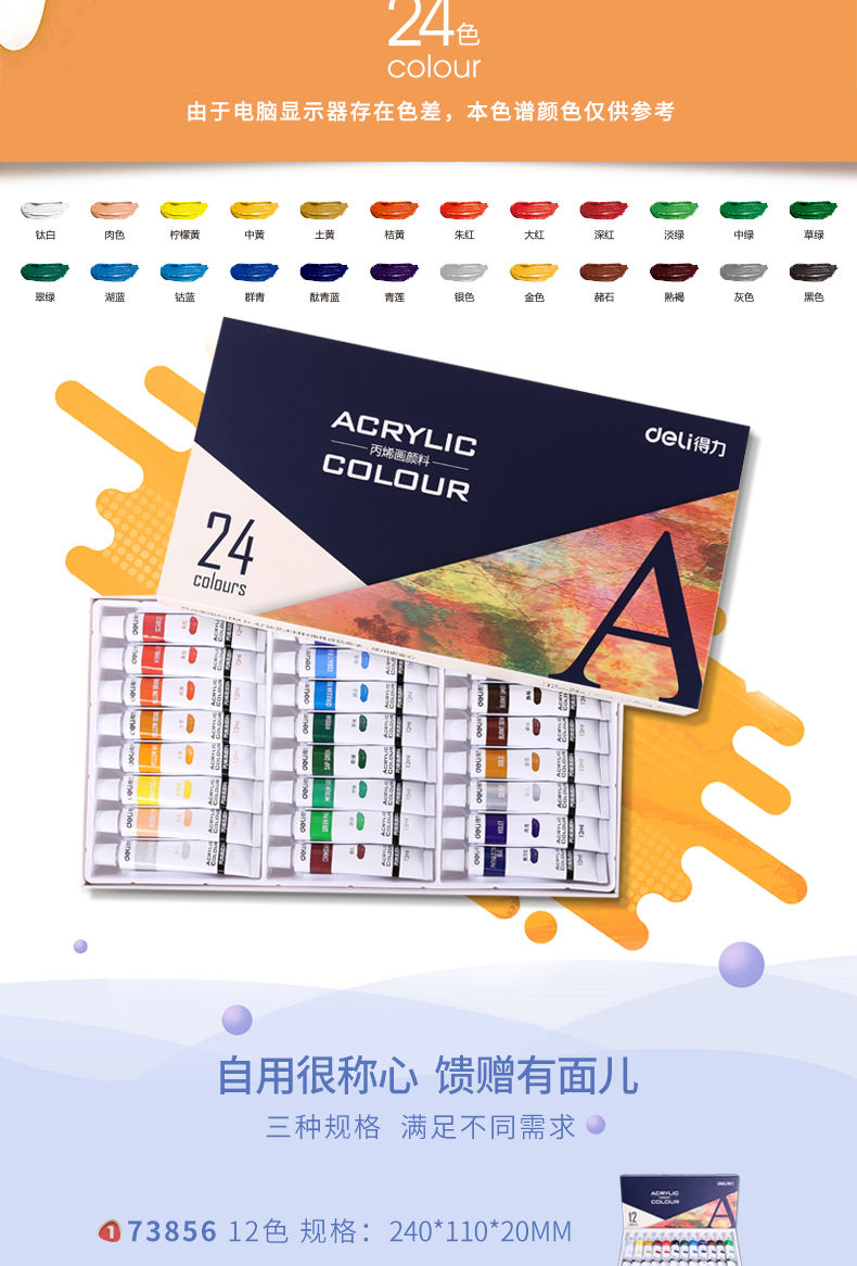 得力(deli) 73858(蓝色)24色丙烯颜料