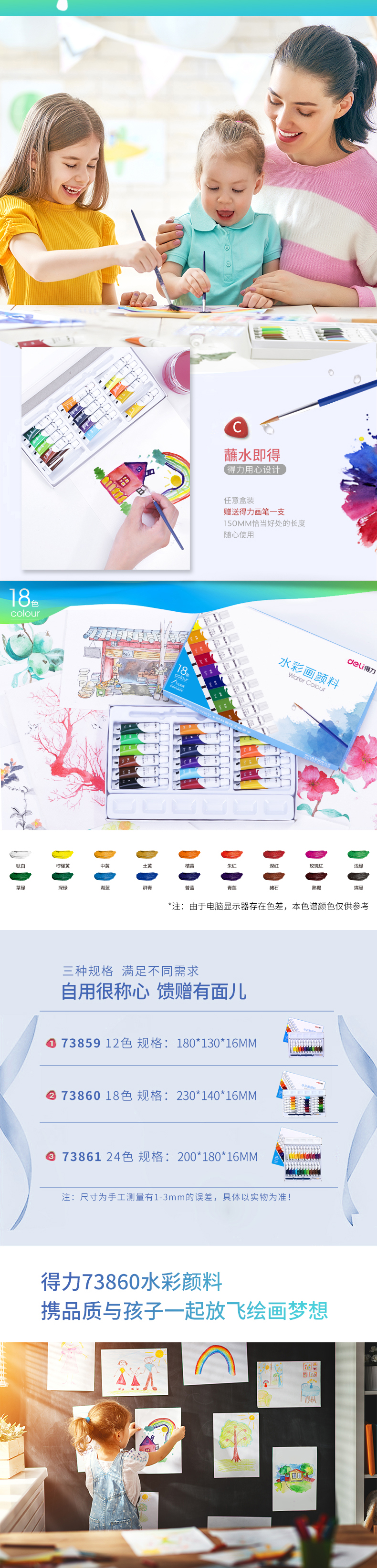 得力(deli) 73860-18色5ML水彩颜料 混色