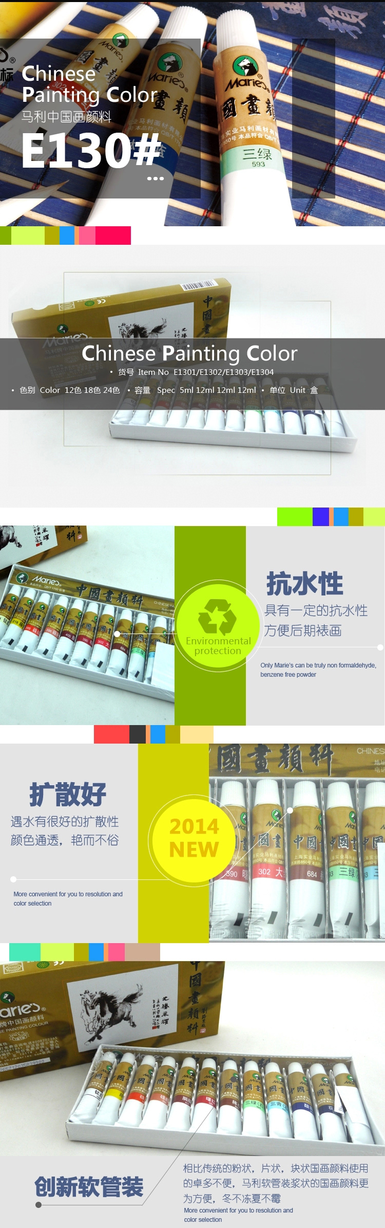 马利(Marie's) E1305中国画颜料套装36色12M...