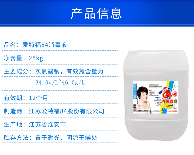 爱特福84消毒液25L大桶装消毒水