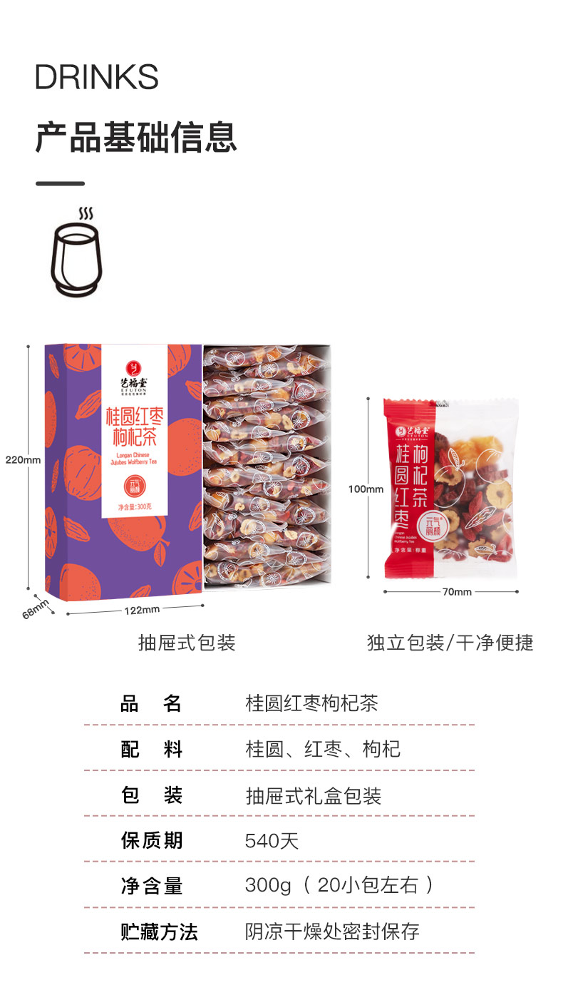 艺福堂 花果茶桂圆红枣枸杞茶300g/盒