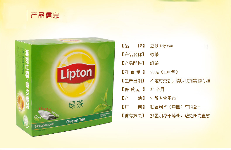 立顿 S100-G-21153402#绿茶茶包200g(2g...